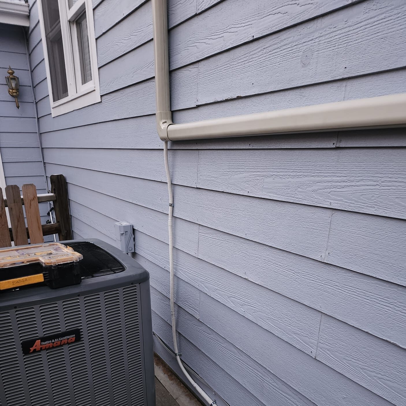 - Protective Linehide Covers: We don’t leave messy copper lines exposed. The “linehide” mimics the look of a downspout, blending seamlessly into the home’s interior siding.